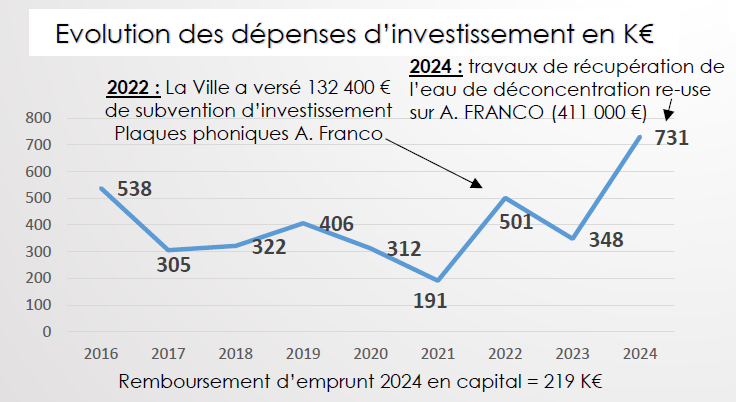 Les dépenses d’investissements ont augmenté en lien avec les travaux réalisés en 2022 et 2024 ;