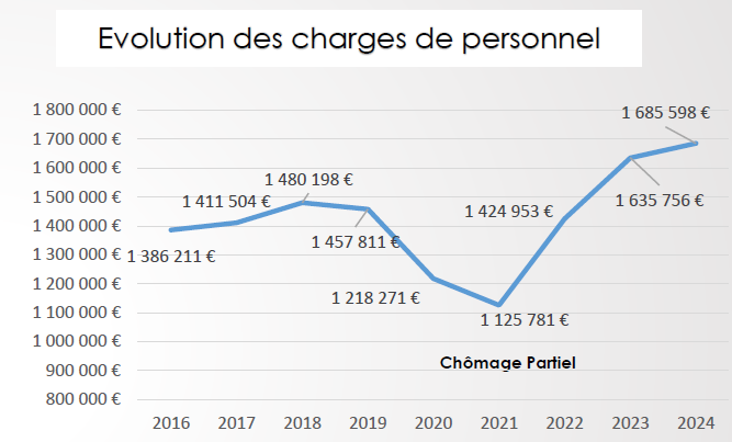 Les charges de personnel ont augmenté de 16% entre 2019 et 2024, représentant désormais plus de 51% des dépenses totales de fonctionnement.